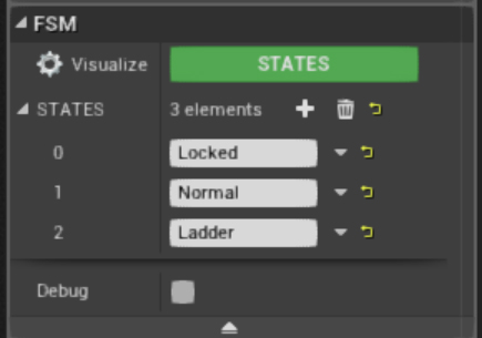 The States are what we will use to control different movement behaviors when our character is using an UI Inventory, moving freely or in ladder movement mode.