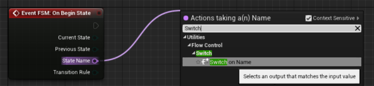 An easy and readable way to react to those State changes, is using a Switch command, so let’s use it here. We will take State by name and switch functions based on its name.
