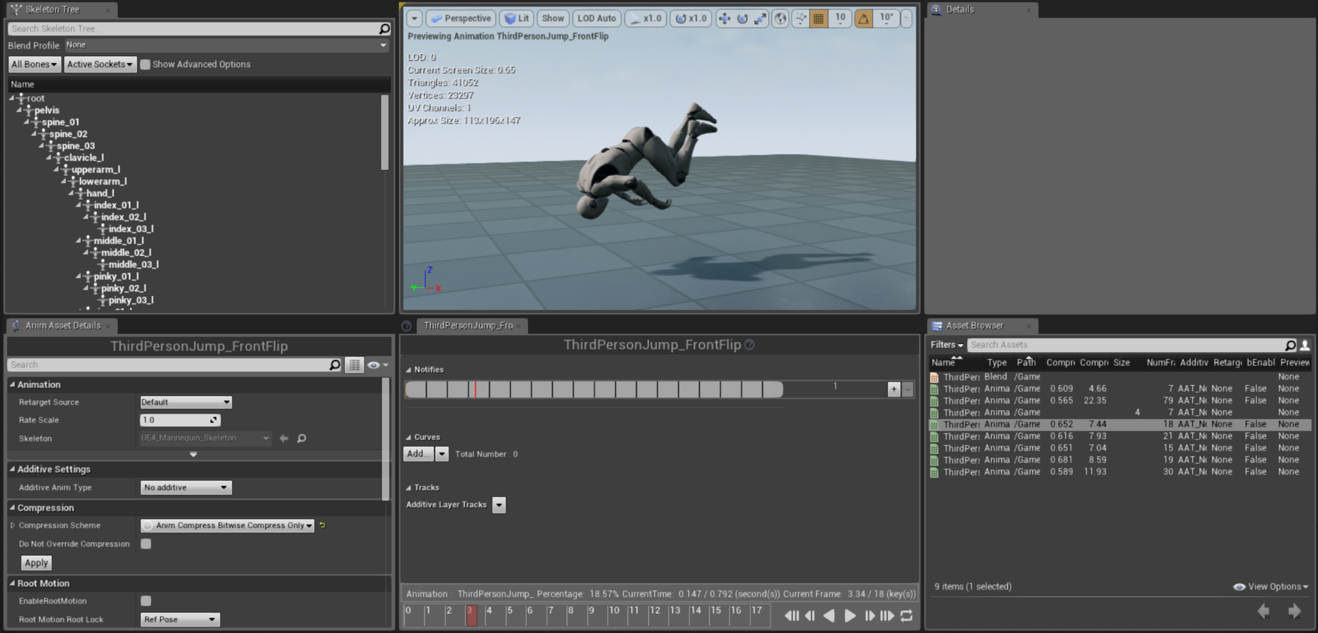 To make the double jump be more visible while testing, let’s make in a animation program (such as Maya or 3dsMax) a double jump animation and import it into the engine: